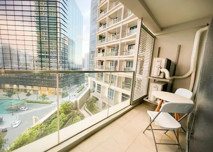 リラックスできる一年中の屋外プールを提供する寝室1室のElegant Bgc Condo Across Mitsukoshi Mall #Upt27P マニラ市 別荘は、サントゥアリオ デ サン アントニオから歩いて25分以内に位置しています。